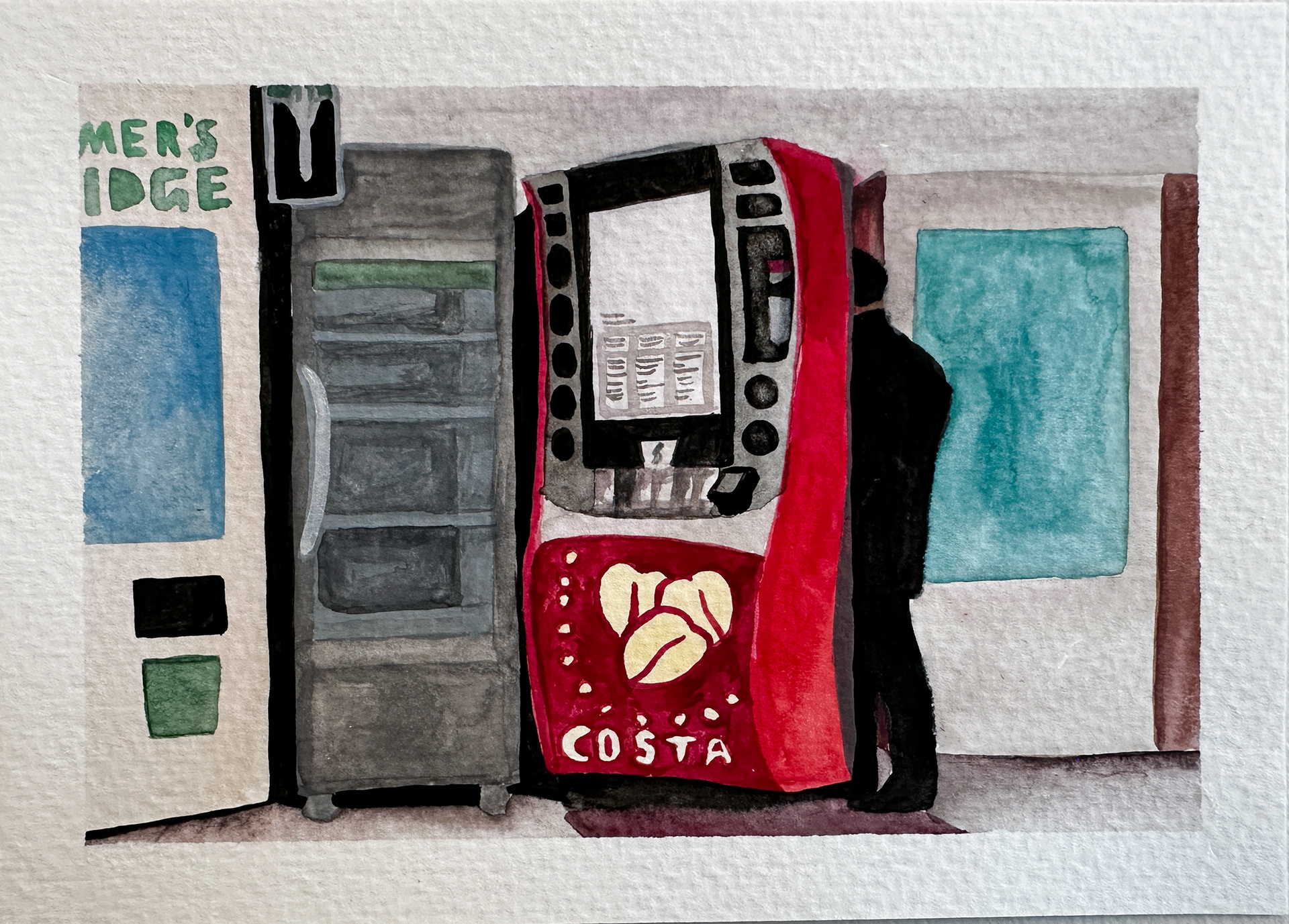 Postcards from Home, watercolor and screen printing, December 2025
