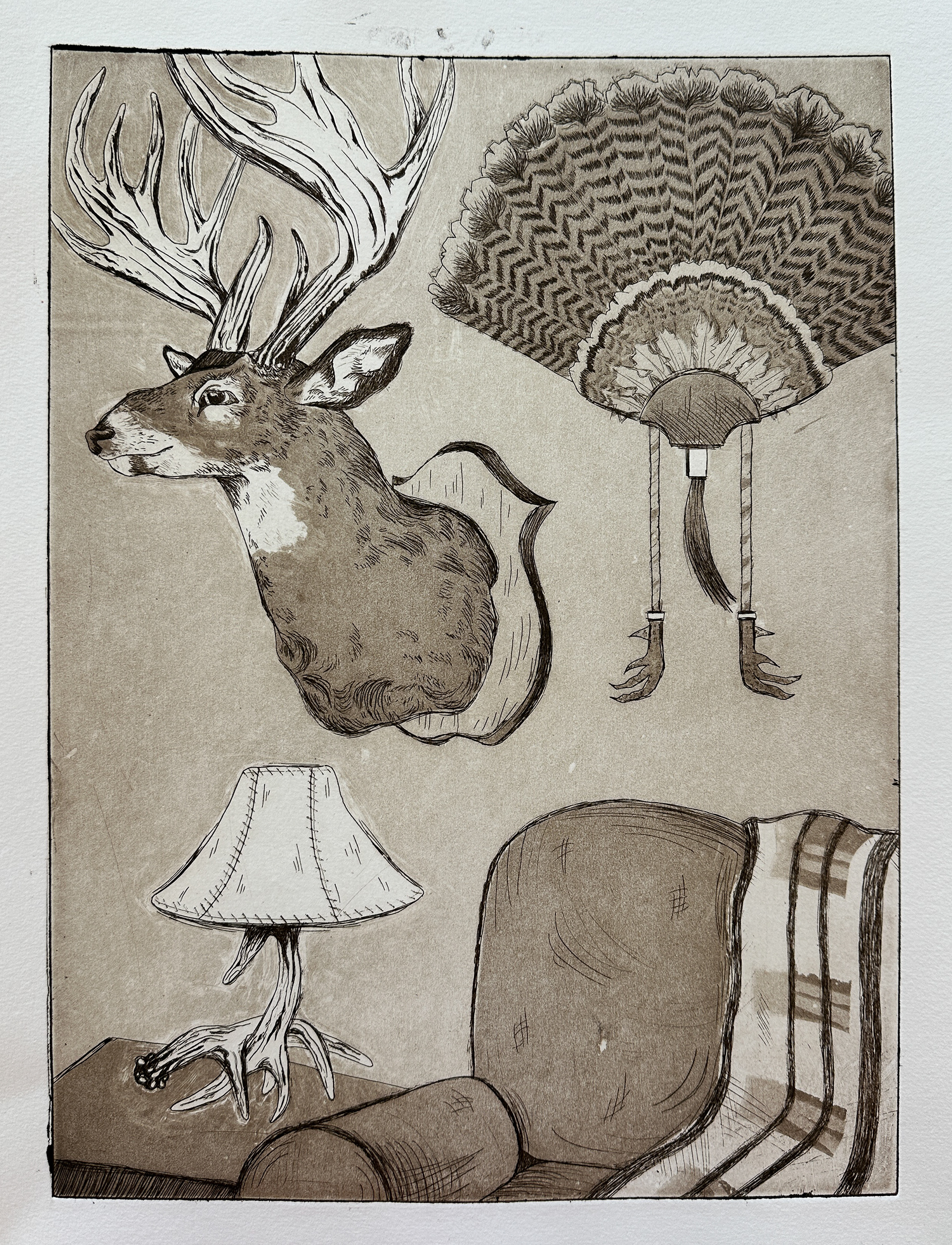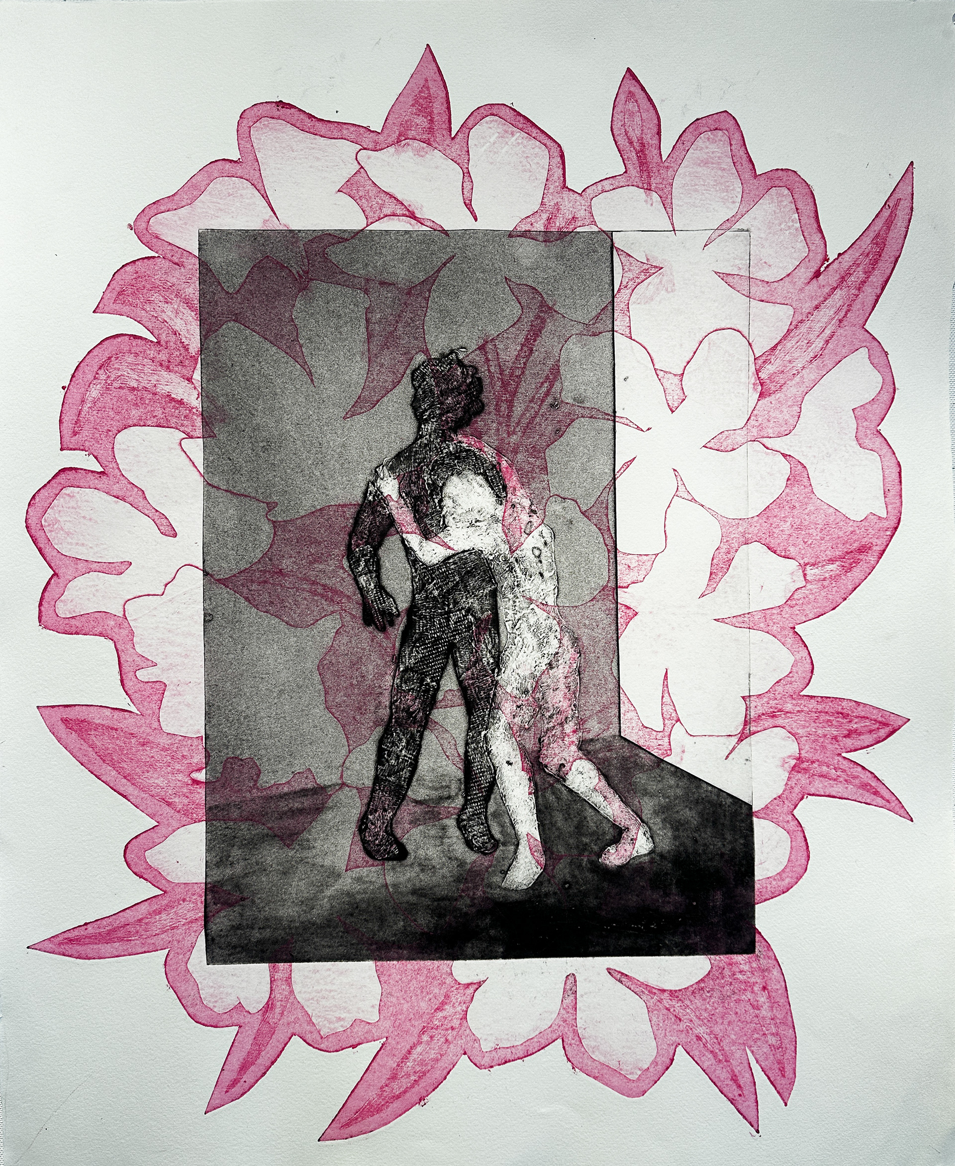 Hunt Room, Etching, September 2024. Rocky Road (Disassembled), Watercolor monotype, September 2024