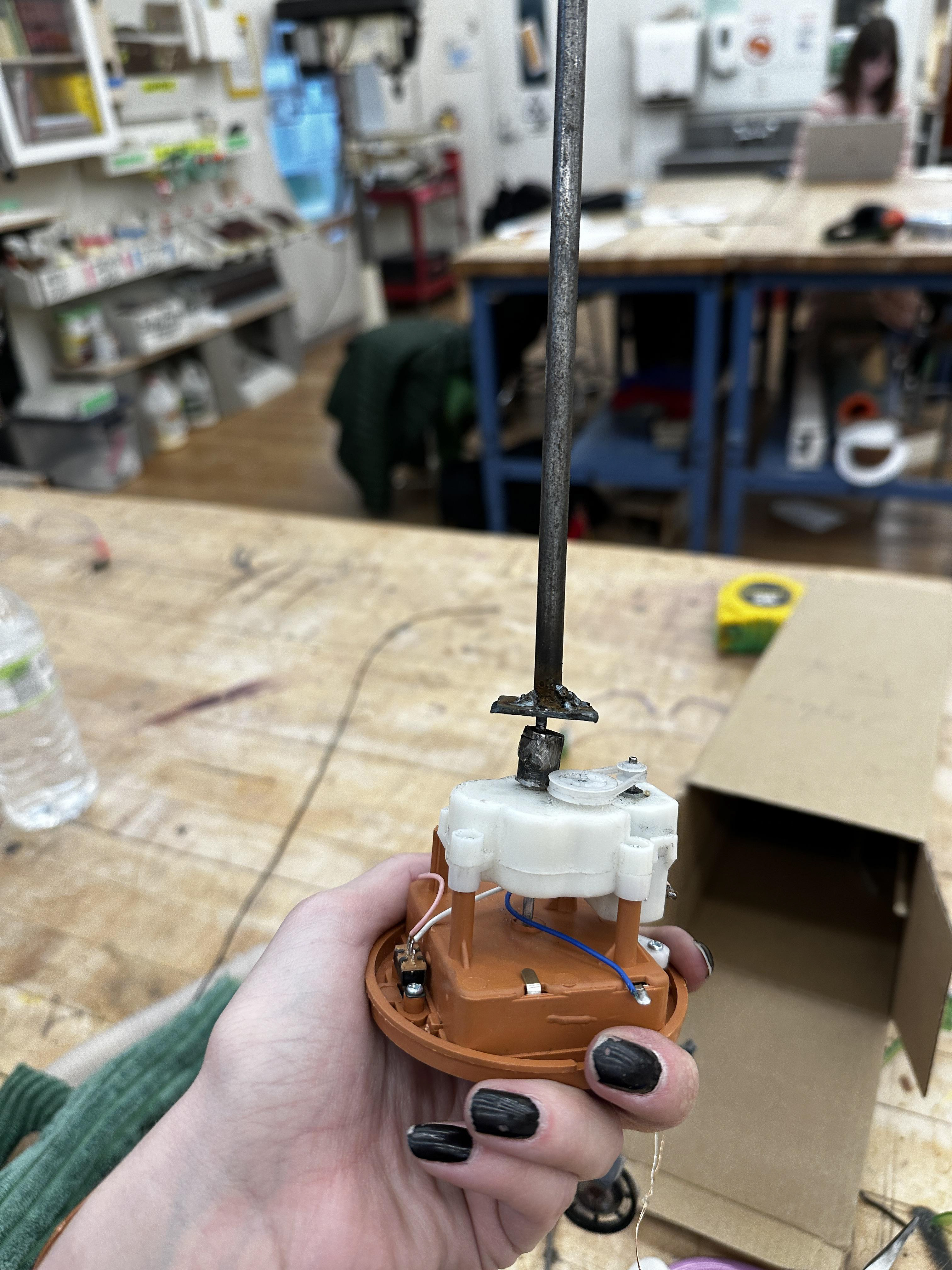 Spinning Ballerina (Formally, a Cactus), recycled toy, metal, wood, March 2025
